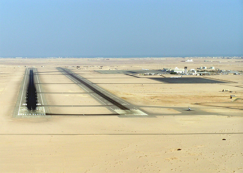 Lande- Startbahn Flughafen Hurghada mit altem Terminal